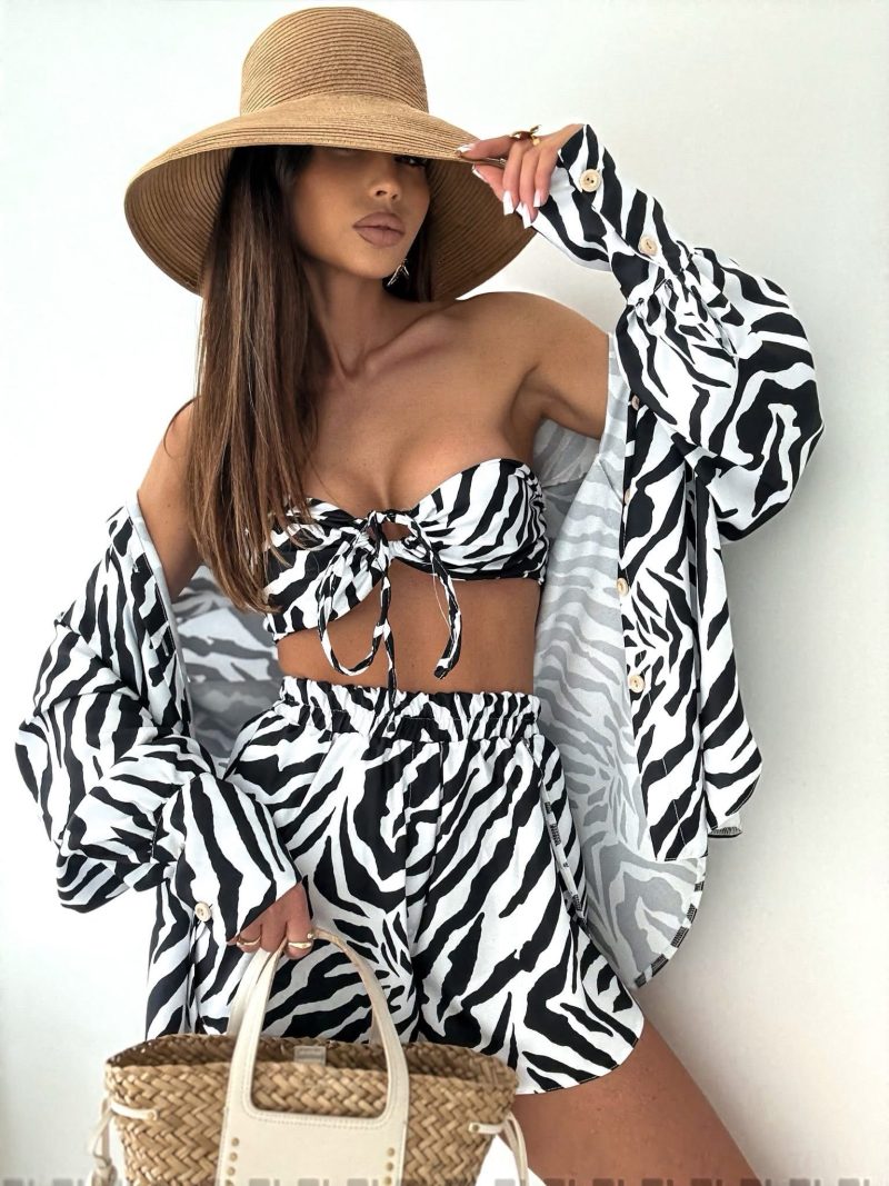 Fashionable pattern in a pleasant fabric. Perfect for summer days. Headband attached.
