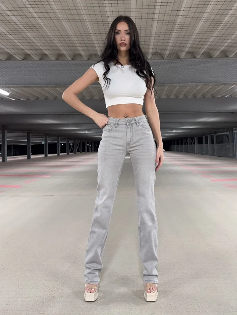 Made of high quality denim fabric. Denim trim. High waist. Button fastening. Timeless design.