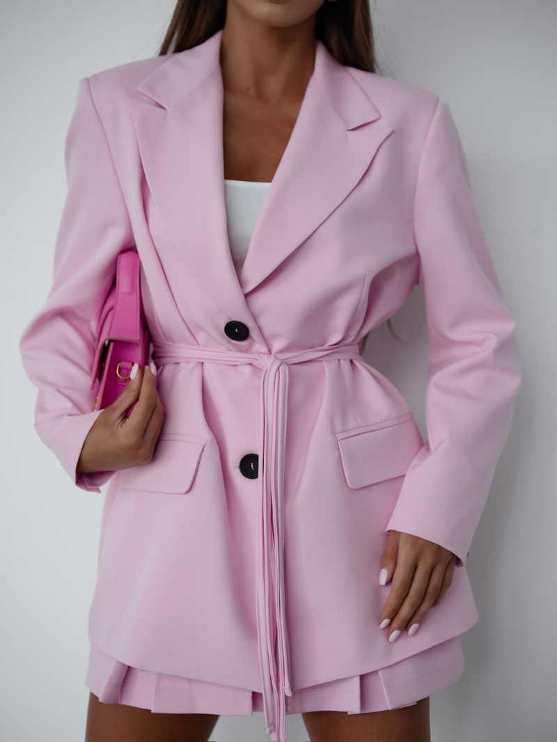 Made with attention to detail, shoulder pads. Adjustable button closure. Drawstrings at the sides to define the waist.