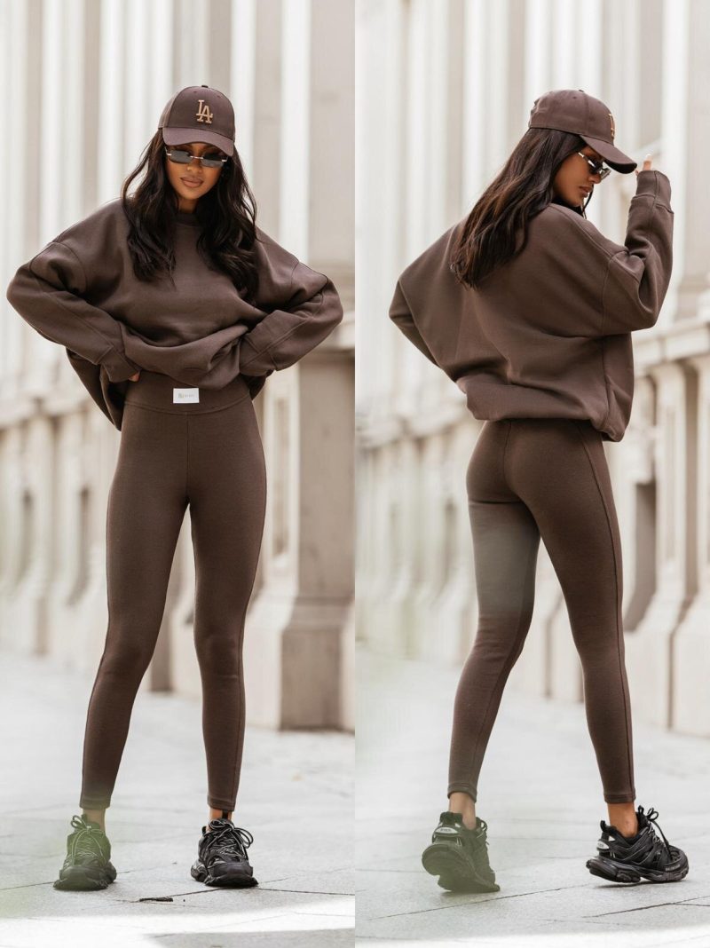 Brushed finish, close-fitting cut. High waist.