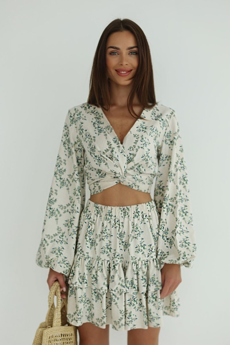 Blouse and skirt combination. Structured, subtle finish. Made of a fabric that is pleasant to the touch.