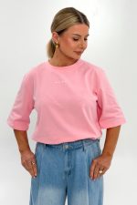 Minimal T-shirt made of smooth fabric. It has a minimalist print. The loose fit ensures wearing comfort.