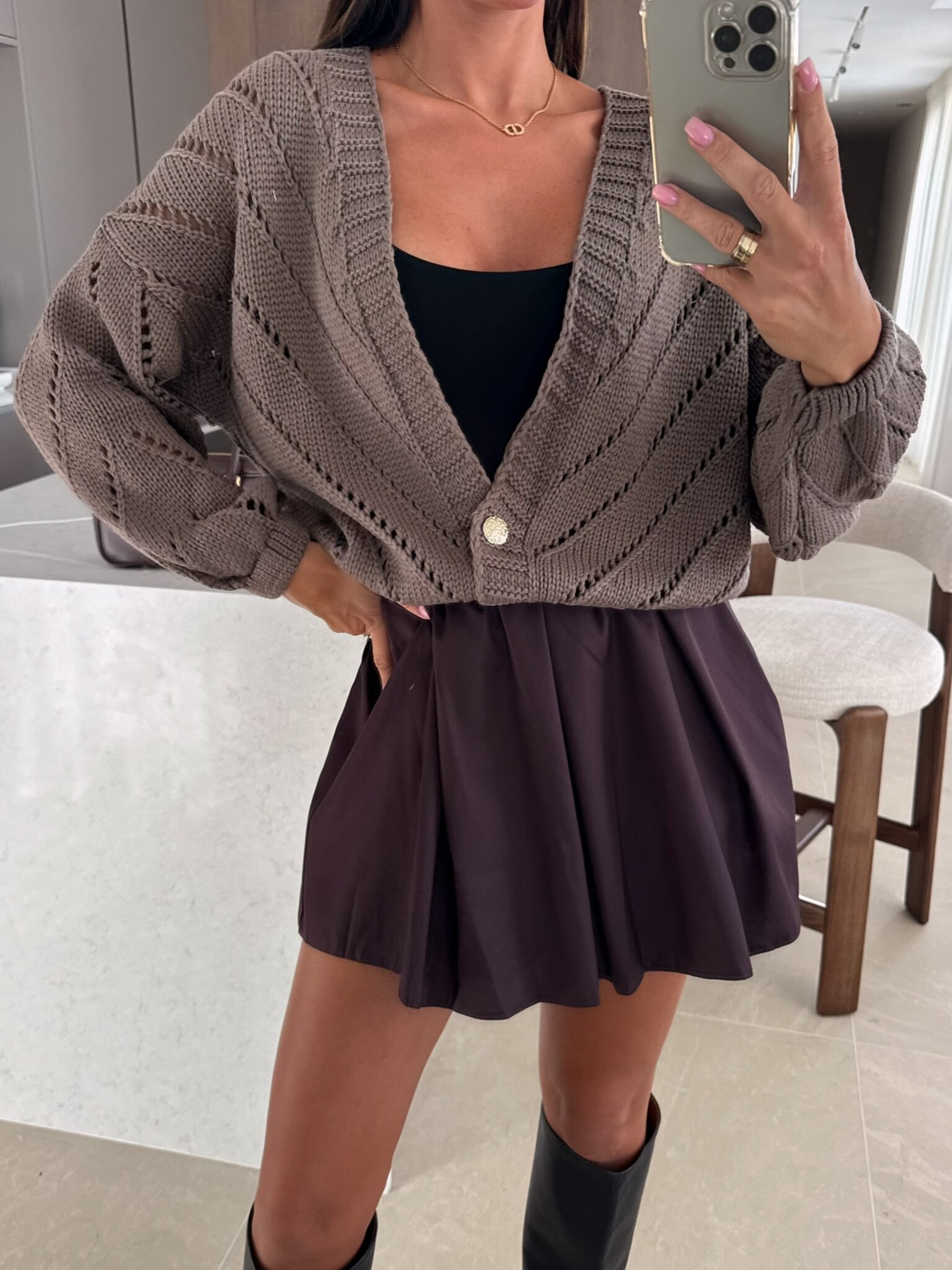 Openwork surface made of soft fabric. Adjustable button fastening.