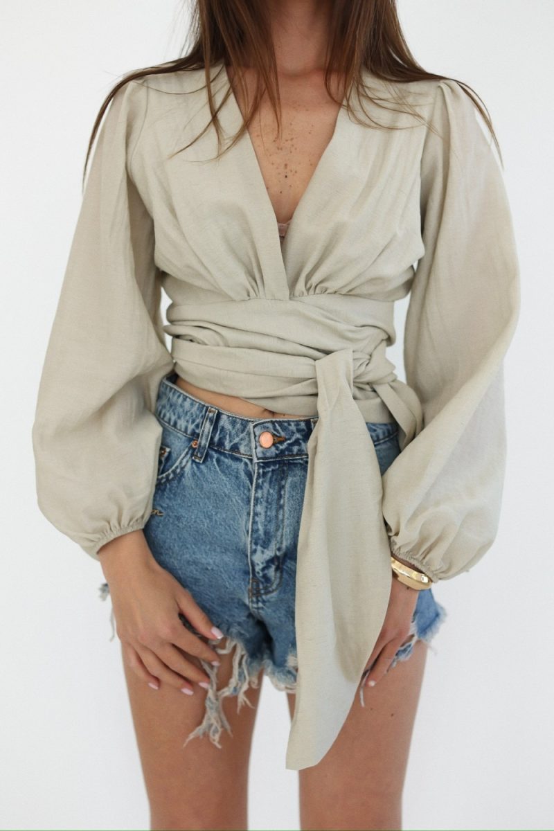 Top with adjustable waistband. Layered neckline. Lightweight fabric.