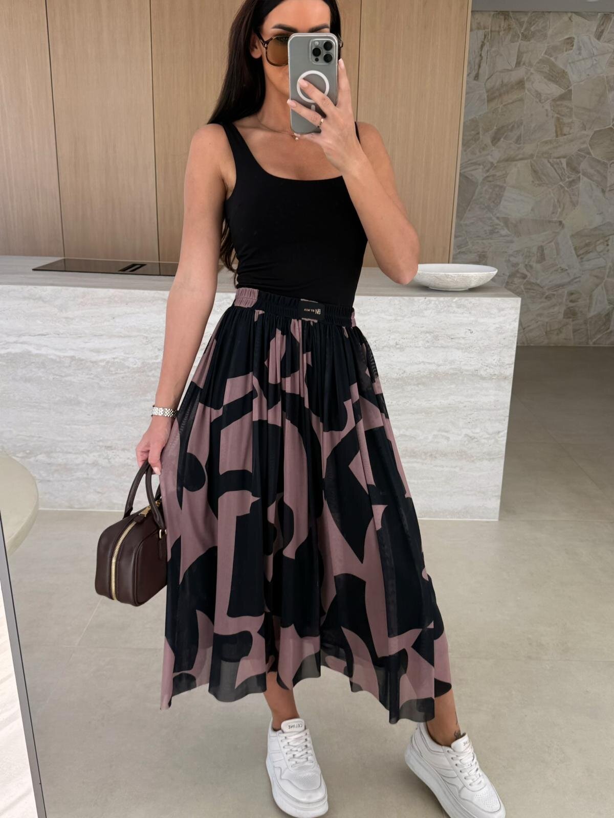 Drawstring at the waist. Trendy press. Midi length. Lined.