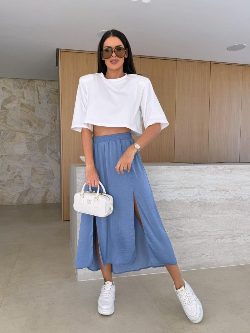 The skirt has a longer cut, an elasticated waistband and side slits. This model will allow you to create many fashionable styles. It is suitable for both everyday use and for more demanding situations.