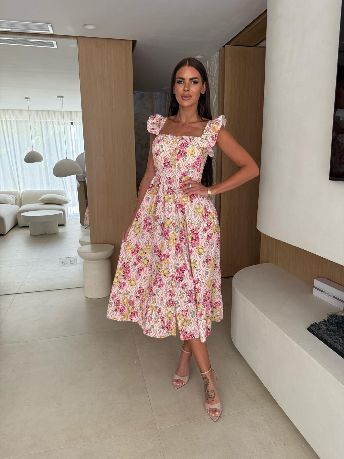 Fashionable pattern, very feminine cut. The dress has stiffer scoops.