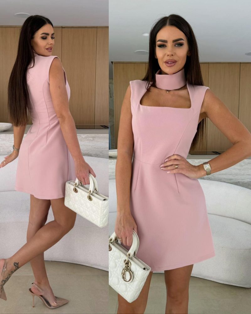 Emphasis on the waist and neckline, mini length. Attached choker. Zip fastening at the back. Made in Poland from high quality fabric